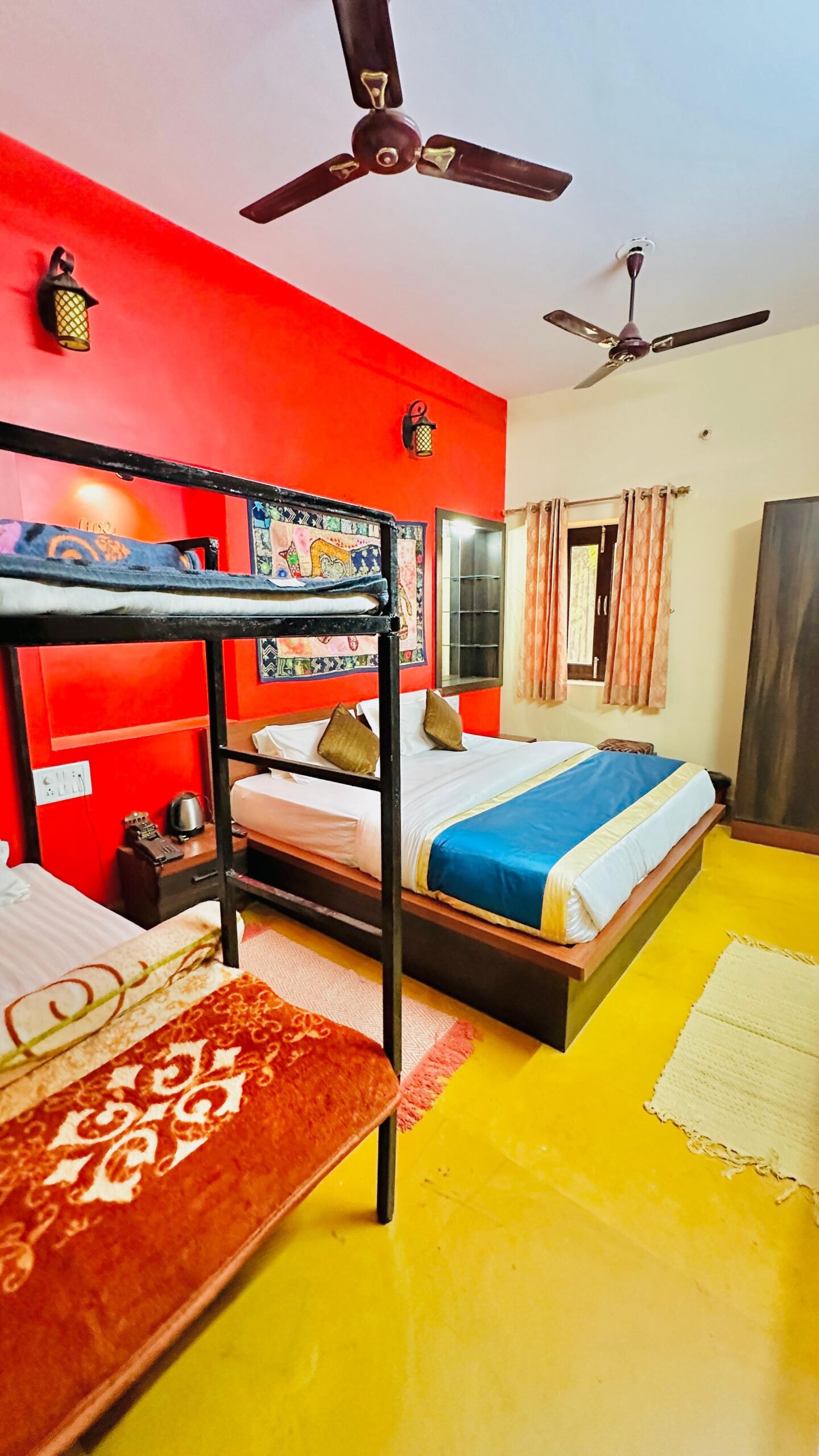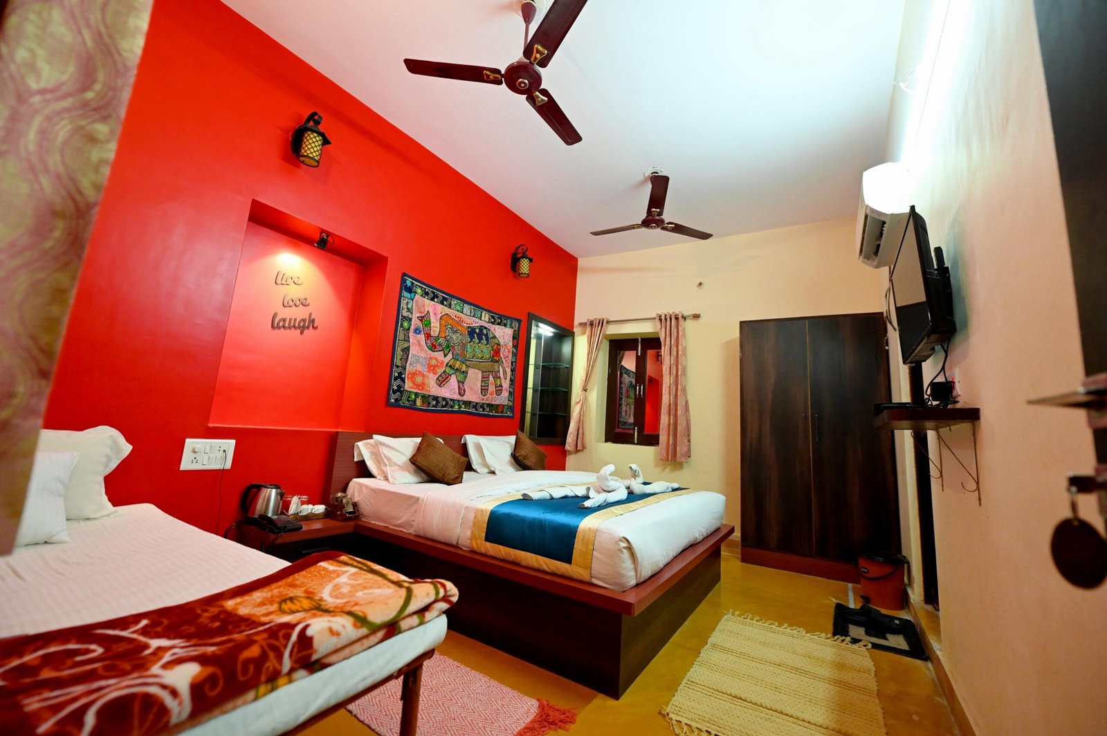 Stay in our luxurious Swiss tents that blend traditional charm with modern comfort. Each tent is crafted with Rajasthani décor and provides: